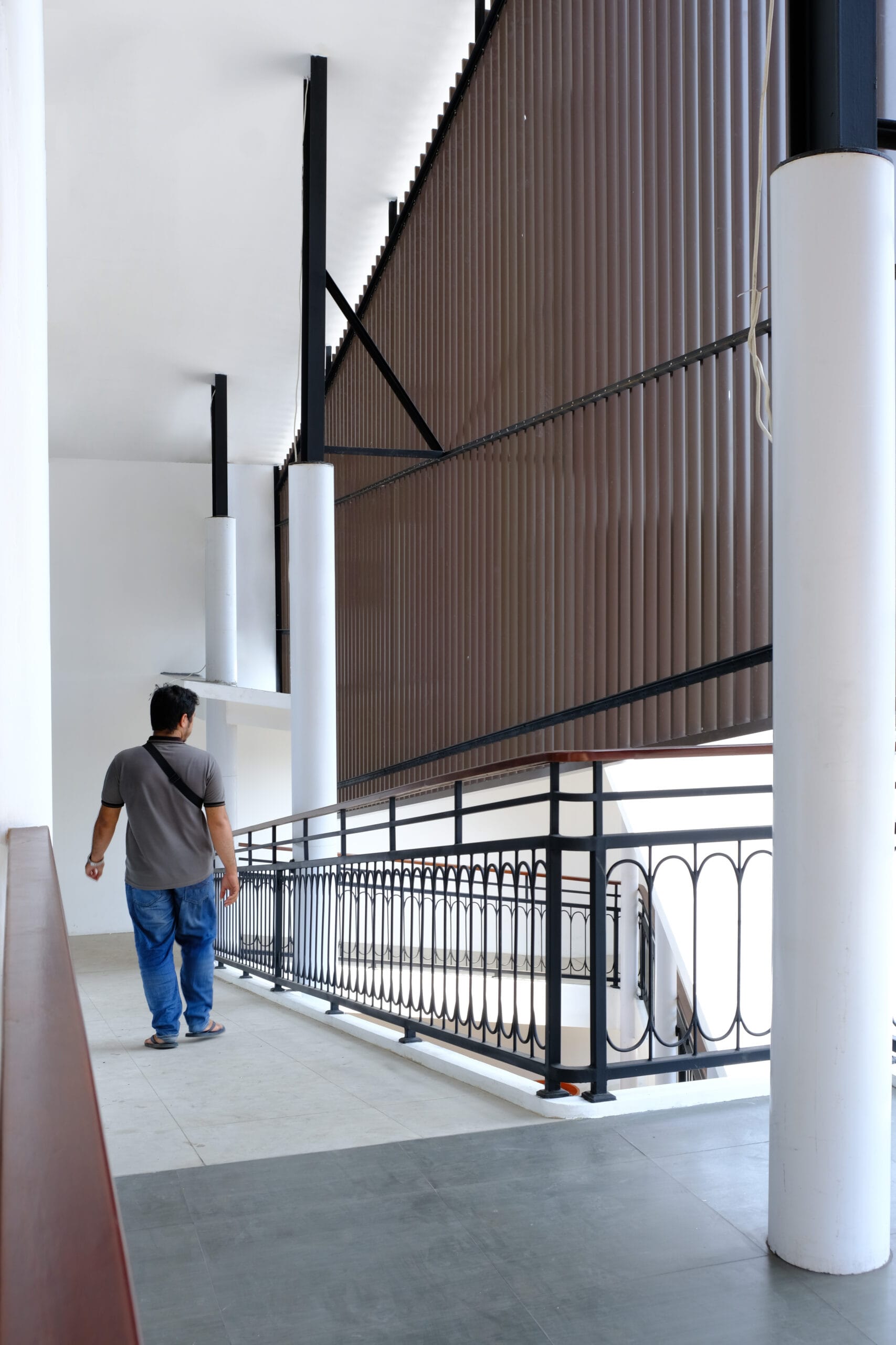 A new front-facing ramp serves as both a striking visual feature and a practical solution, enhancing the façade while providing inclusive access to the second floor. The voids allows greater spatial connectivity between the first and second floor. This sense of continuity is further reinforced through the careful interplay of indoor and outdoor phases, expressed in the reworked front façade. Vertical lines were introduced to add texture, functioning both as shading elements and as a defining feature of the building’s new identity